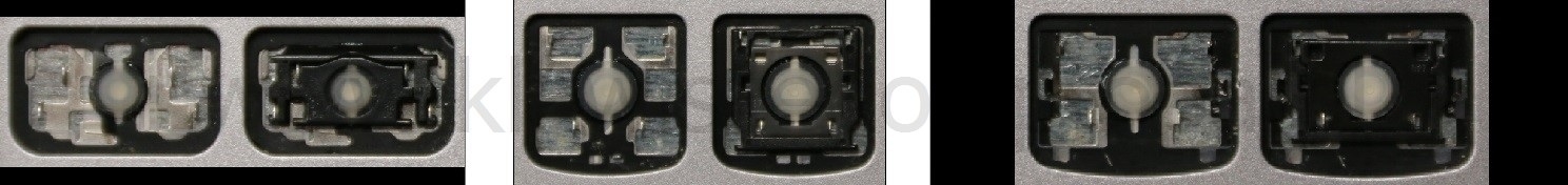 - Pentru a alege modelul corect, compară poza spațiului gol de pe tastatura ta cu pozele de mai jos sau scoate tasta „A” – sub ea există întotdeauna un suport mediu.