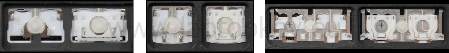 - Pentru a alege modelul corect, compară poza spațiului gol de pe tastatura ta cu pozele de mai jos sau scoate tasta „A” – sub ea există întotdeauna un suport mediu.