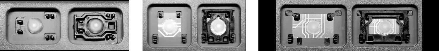 - Pentru a alege modelul corect, compară poza spațiului gol de pe tastatura ta cu pozele de mai jos sau scoate tasta „A” – sub ea există întotdeauna un suport mediu.