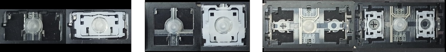 - Pentru a alege modelul corect, compară poza spațiului gol de pe tastatura ta cu pozele de mai jos sau scoate tasta „A” – sub ea există întotdeauna un suport mediu.