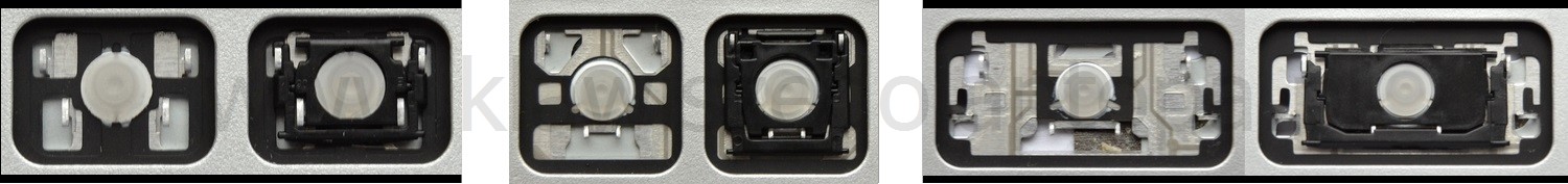 - Pentru a alege modelul corect, compară poza spațiului gol de pe tastatura ta cu pozele de mai jos sau scoate tasta „A” – sub ea există întotdeauna un suport mediu.
