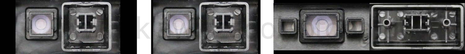 - Pentru a alege modelul corect, compară poza spațiului gol de pe tastatura ta cu pozele de mai jos sau scoate tasta „A” – sub ea există întotdeauna un suport mediu.
